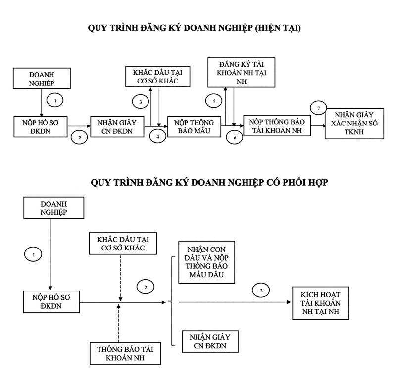 Trước đây, khi đăng ký thành lập mới doanh nghiệp, các doanh nghiệp phải đến Phòng Đăng ký kinh doanh của Sở Kế hoạch và Đầu tư ít nhất 5 lần để nộp hồ sơ đăng ký thành lập mới, nhận Giấy chứng nhận đăng ký doanh nghiệp, nộp thông báo mẫu dấu, nộp thông báo đăng ký số tài khoản ngân hàng và nhận giấy xác nhận đăng ký tài khoản ngân hàng. Chưa kể phải mất 2 lần đến ngân hàng và các cơ sở khắc dấu để đăng ký số tài khoản và khắc mẫu dấu. Để tiết kiệm thời gian cho cá nhân, tổ chức đăng ký thành lập doanh nghiệp, Sở Kế hoạch và Đầu tư đề ra giải pháp gộp các bước trong quy trình đăng ký. Ông Bùi Minh Trung, Phó Trưởng Phòng Đăng ký kinh doanh, cho biết: “Bước đăng ký số tài khoản ngân hàng sẽ được gộp lại trong hồ sơ đăng ký thành lập mới doanh nghiệp. Đồng thời với bước tiếp nhận hồ sơ đăng ký thành lập mới doanh nghiệp sẽ hướng dẫn và làm trước thông báo mẫu dấu. Ở bước đăng ký khắc dấu thay vì doanh nghiệp phải nhận Giấy chứng nhận đăng ký doanh nghiệp rồi mới khắc dấu thì Phòng Đăng ký kinh doanh sẽ chuyển kết quả sang cơ sở khắc dấu để khắc con dấu, sau đó cơ sở khắc dấu chuyển lại con dấu cho Phòng Đăng ký kinh doanh. Bước cuối cùng là doanh nghiệp sẽ nhận Giấy chứng nhận đăng ký doanh nghiệp đã có đăng ký số tài khoản ngân hàng và nhận con dấu, đồng thời nộp thông báo sử dụng mẫu dấu đã làm trước đó. Nhân viên ngân hàng sẽ liên hệ doanh nghiệp để kích hoạt số tài khoản và hoàn tất quá trình đăng ký”.