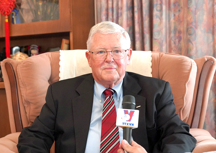 Giáo sư Carl Thayer trả lời phỏng vấn của phóng viên TTXVN.