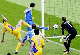HLV Donadoni “đứng, ngồi không yên”, chỉ đạo các học trò chuyển từ tấn công trung lộ sang tấn công biên, nhằm tìm sơ hở của tuyến phòng ngự Romania. Tuy nhiên, trước “khối bê tông” không ngại va chạm, đeo bám quyết liệt ở tuyến phòng ngự Romania, các chân sút Italia cũng chỉ tạo được sức ép trước khung thành của thủ môn Lobont (1-Romania), mà không ghi được bàn thắng.