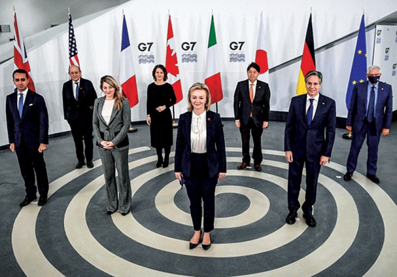 Trong khi đó, Ngoại trưởng nước chủ nhà Anh Liz Truss lên tiếng kêu gọi G7 đoàn kết: “Chúng ta cần phải tự bảo vệ mình trước các mối đe dọa ngày càng tăng từ các bên thù địch. Chúng ta cần hợp tác mạnh mẽ để chống lại những kẻ đang tìm cách hạn chế biên giới của tự do và dân chủ”.