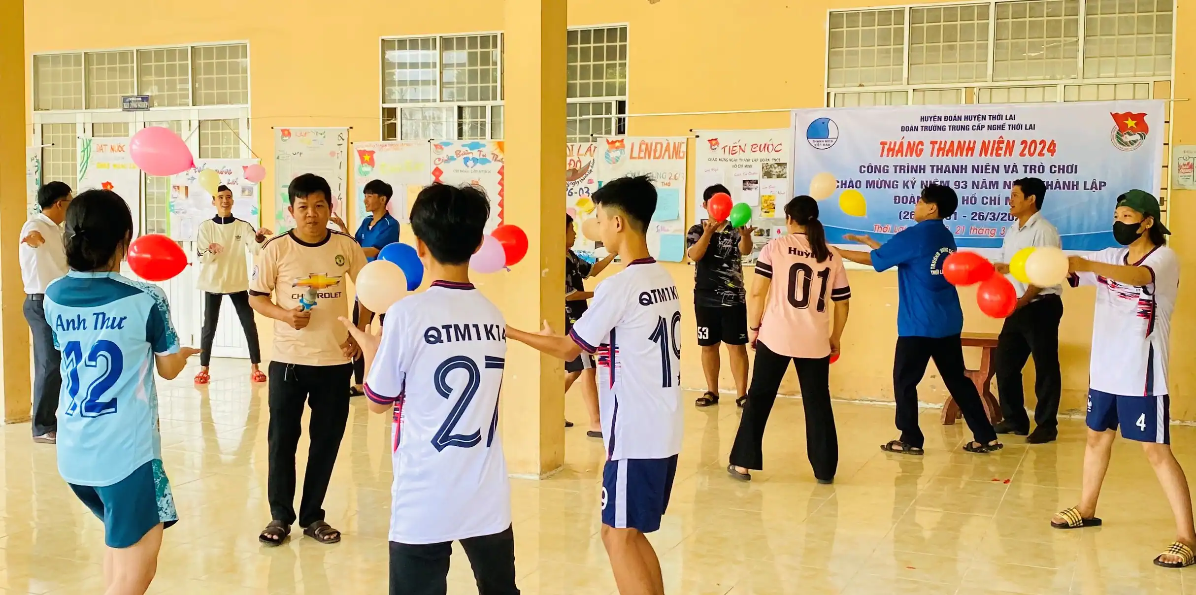 ĐVTN Trường TCN Thới Lai hưởng ứng hoạt động làm báo tường và tham gia các trò chơi dân gian. Ảnh do đơn vị cung cấp