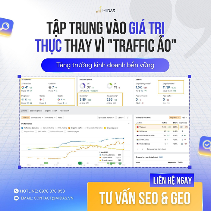 Kết hợp SEO & GEO: Dịch chuyển từ traffic ảo sang giá trị thực cùng Midas Agency.