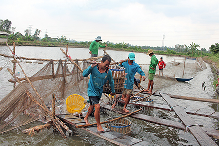 Thu hoạch cá tra nguyên liệu tại phường Tân Hưng, quận Thốt Nốt, TP Cần Thơ.