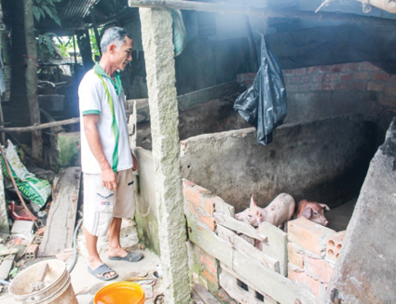 Nhiều ngày qua, ông Nguyễn Văn Hồng ở xã Thạnh An, huyện Vĩnh Thạnh phải cho đàn heo con ăn cầm chừng vì giá heo hơi vẫn còn ở mức thấp. |