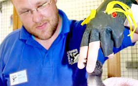 Các nhân viên tại khu nuôi động vật biển Living Coast (tỉnh Devon, Anh) đang cố tình đánh lừa con chim cánh cụt mới nở tin rằng chiếc bao tay đen mà họ mang là ba mẹ nó. Sở dĩ họ phải làm vậy vì con chim bé nhỏ này đã bị bỏ rơi từ khi còn nằm trong trứng. Để đóng vai ba mẹ chim ta, các nhân viên thường đeo cặp bao tay đen có trang trí đầy đủ đôi mắt đỏ và nhúm lông vàng mỗi khi cho chim con ăn.