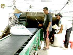 Thu mua gạo xuất khẩu tại một doanh nghiệp ở TP Cần Thơ.