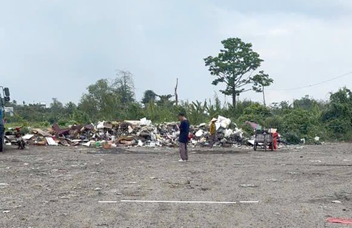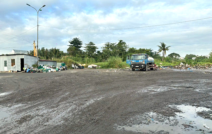 Điểm tập kết rác thải ở Khu dân cư Thới Nhựt 2, Công ty Đỗ Duy cam kết nạo vét bùn và đổ đá mặt đường để đảm bảo vệ sinh. Ảnh: CTV
