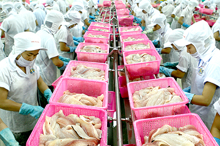 Chế biến cá tra xuất khẩu. Ảnh: DUY KHƯƠNG
