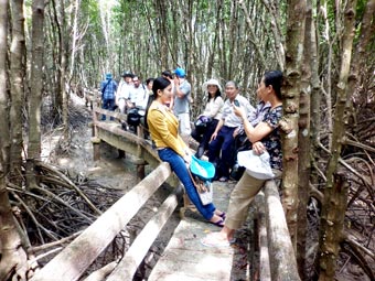 Nhiều điểm du lịch tại các tỉnh, thành vùng ĐBSCL dần tạo được nét riêng, điểm nhấn. (Trong ảnh: Du khách tham quan Vườn Quốc gia Đất Mũi). |