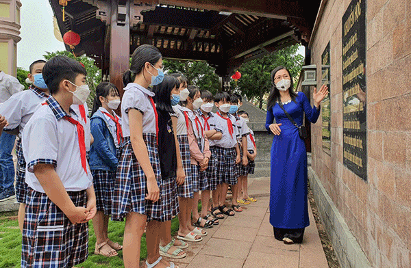 Học sinh Trường Tiểu học An Thới 2 (quận Bình Thủy) tham quan Khu tưởng niệm Thủ khoa Bùi Hữu Nghĩa. Ảnh: B.NG