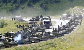 Xe quân sự Nga tại Nam Ossetia, nơi binh sĩ Gruzia đã rút đi. Ảnh: China Daily |