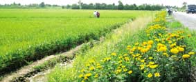Mô hình công nghệ sinh thái “bờ hoa ôm ruộng lúa” ở quận Bình Thủy, TP Cần Thơ.