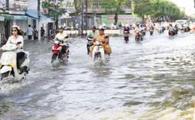 Triều cường cuối tháng 10-2011 đã làm ngập nhiều tuyến đường nội ô của TP Cần Thơ.