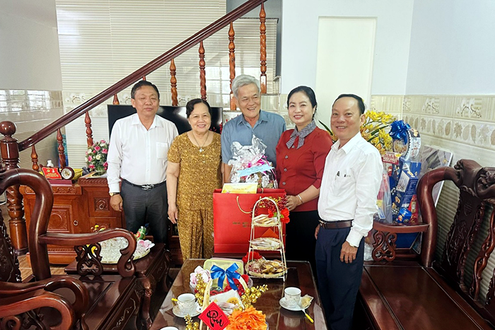 Bà Phạm Thị Phượng, Ủy viên Ban Thường vụ Thành ủy, Chủ nhiệm Ủy ban Kiểm tra Thành ủy Cần Thơ (thứ tư, từ phải sang) cùng đoàn công tác thăm và tri ân nguyên lãnh đạo Ủy ban Kiểm tra Thành ủy Cần Thơ. Ảnh: Thành Luân