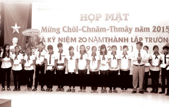 Học sinh có hoàn cảnh khó khăn Trường Phổ thông Dân tộc nội trú TP Cần Thơ nhận quà của Ủy ban MTTQ Việt Nam TP Cần Thơ. |