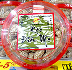* Kẹo điều mè thành phần gồm: hạt điều, mè, đường; ăn liền không qua chế biến. Sản phẩm của Doanh nghiệp tư nhân thương mại Nhật Anh có bán tại các siêu thị, giá tham khảo: 47.800 đồng/hộp 150 gram.