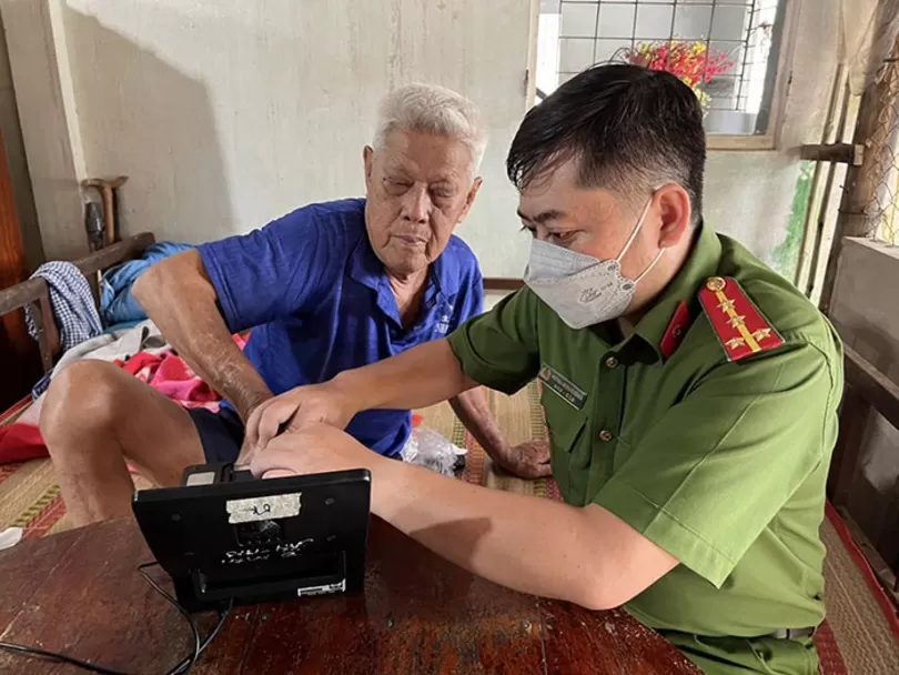 Công an quận Ô Môn tổ chức cấp thẻ CCCD lưu động cho người dân đi lại khó khăn.