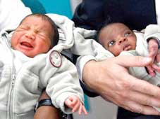 Hiếm có cặp vợ chồng nào sinh con hai lần đều là song sinh, và càng hiếm hơn khi hai cặp song sinh ấy khác biệt nhau về nước da, màu tóc và màu mắt. Những điều cực kỳ hiếm gặp ấy trong y học đã xảy ra với một cặp vợ chồng khác chủng tộc ở Hampshire (Anh).