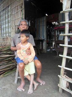 Ông Danh Cụt đang nuôi dưỡng đứa cháu ngoại bị câm, điếc bẩm sinh. |