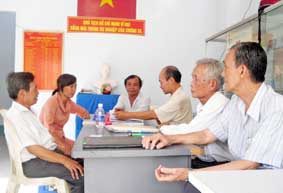 Trước khi tổ chức buổi hòa giải, các thành viên Tổ hòa giải khu vực 3 họp bàn hướng giải quyết vụ việc. |