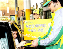 Bạn có thể đổ xăng ở trạm mà không cần sự trợ giúp của nhân viên phục vụ, không cần cho biết loại xăng xe đang dùng, cũng như không cần móc ví trả tiền. Tất cả những gì bạn cần là một tấm thẻ tín dụng đặc biệt và một con chip gắn vào ô tô. Đây là dịch vụ ứng dụng công nghệ nhận dạng tự đông có tên gọi Nhận dạng tần số vô tuyến (Radio Frequency Identification RFID) vừa được S-Oil thí điểm tại một trạm cung ứng xăng dầu ở Seoul. S-Oil là công ty lọc dầu đầu tiên ở Hàn Quốc triển khai RFID ở trạm bơm xăng.