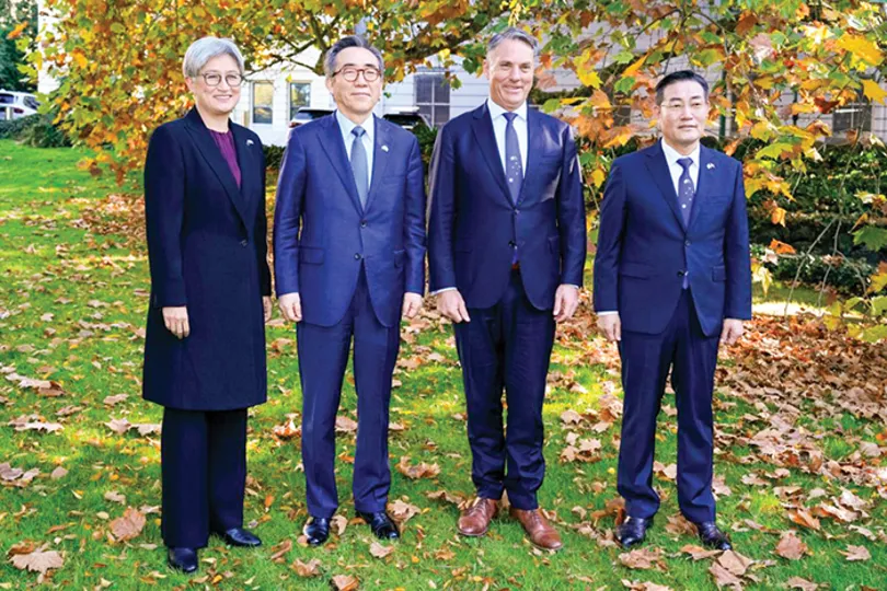 Bộ trưởng Quốc phòng và Ngoại giao Hàn Quốc chụp ảnh cùng những người đồng cấp Úc tại Melbourne ngày 1-5. Ảnh: AFP