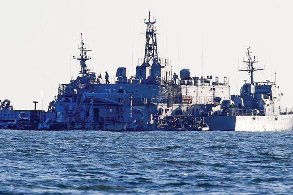 Một tàu tuần tra của Hàn Quốc neo đậu ngoài khơi đảo Yeonpyeong. Ảnh: Reuters
