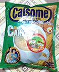 * Ngũ cốc dinh dưỡng Calsome làm từ bột kem không sữa, dầu thực vật, đường, bột mì, bột bắp, gạo, mạch nha, hương sữa