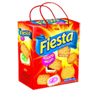 * Bánh quy hỗn hợp Fiesta làm từ bột mì, chất béo thực vật, bột bắp, đường, muối, sữa bột, hương sữa, dâu