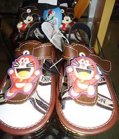 * Giày sandal bé trai làm từ cao su với thiết kế kết hình Đô-rê-mon… Sản phẩm của Công ty TNHH MTV SX-TM-XD Tất Đạt, có bán tại các siêu thị, cửa hàng chuyên kinh doanh giày dép; giá tham khảo: 41.000 đồng/đôi.