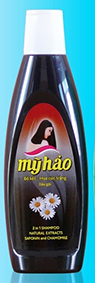 * Dầu gội Mỹ Hảo chiết xuất từ bồ kết, hoa cúc… giúp chăm sóc và nuôi dưỡng tóc đen, mượt; giá tham khảo: 24.000 đồng/chai.