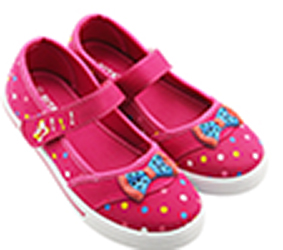 * Giày bé gái chất liệu sản phẩm mềm từ vải và nhựa tổng hợp. Giày có họa tiết chấm bi cùng chiếc nơ nhỏ tạo điểm nhấn; đế nhẹ tiện lợi cho đến trường và dã ngoại. Giá tham khảo: từ 145.000 đồng/đôi.