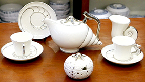 * Bộ cafe sứ hoa văn Ngọc Biển: Bộ sản phẩm gồm: 1 bình đựng cafe, 1 bình đựng đường, 1 bình đựng sữa, 6 tách và 6 dĩa lót tách. Sản phẩm tráng men bằng công nghệ nano giúp trắng sáng, khó bám bẩn, dễ tẩy rửa; loại bỏ chì, Cadmium bảo đảm an toàn sức khỏe người sử dụng; giá tham khảo: 5,5 triệu đồng/bộ.