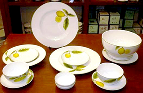 * Bộ đồ ăn hoa văn quả chanh: Bộ sản phẩm được làm từ nguyên liệu sứ và men, thuộc dòng sản phẩm Camelia cao cấp, gồm 47 sản phẩm (chén cơm, chén chấm, đĩa lót, tô, thố, muỗng…) được thiết kế với họa tiết là những quả chanh; giá tham khảo: 1,756 triệu đồng/bộ.