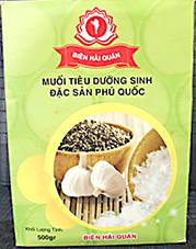 * Muối tiêu dưỡng sinh Phú Quốc: Sản phẩm của Công ty Doanh nghiệp Tư nhân Biên Hải Quán; đặc sản Phú Quốc được khách hàng trong và ngoài nước ưa chuộng. Giá tham khảo: 40.000 đồng/gói 500g.