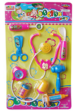* Vỉ đồ nghề bác sĩ dành cho bé trai và bé gái trên 3 tuổi, giúp bé làm quen với bộ đồ nghề dùng cho bác sĩ. Các chi tiết được thiết kế đẹp, gần gũi với cuộc sống hằng ngày. Giá tham khảo: 65.000 đồng/bộ.