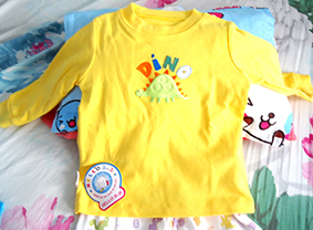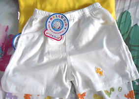 * Quần thun có thêu họa tiết xinh xắn, vải thun mềm tạo sự thoải mái cho bé khi mặc; giá tham khảo: 40.000 đồng/cái.