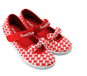 * Giày vải sử dụng chất liệu chính là vải có đặc điểm êm chân và thông thoáng, phù hợp khi đến trường và đi dã ngoại. Điểm nhấn giày là phần dây quai và chiếc nơ xinh giúp cố định giày ôm sát chân, thoải mái khi vận động. Giá tham khảo: từ 140.000 đồng/đôi.
