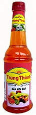 * Dấm hoa quả Trung Thành: Dấm được lên men với men hoa quả tự nhiên và nước tinh lọc màu hồng nhạt, vị chua dịu đặc trưng; dùng làm nguyên liệu pha chế các loại nước chấm hoặc dùng để trộn món salad. Sản phẩm của Công ty TNHH Trung Thành. Giá tham khảo: 9.000 đồng/chai 500ml.