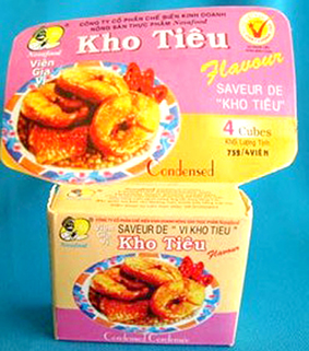 * Viên gia vị kho tiêu: Sản phẩm của Công ty Cổ phần Chế biến Kinh doanh Nông sản Thực phẩm Nosafood, đặc biệt thích hợp trong việc chế biến món cá kho tiêu. Giá tham khảo: 3.800 đồng/hộp 75g.