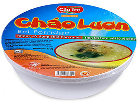 * Cháo lươn được chế biến từ gạo, thịt lươn, hành, nghệ... Sản phẩm tiện lợi sử dụng, giúp có món ăn nhanh mà vẫn đảm bảo cung cấp đầy đủ chất dinh dưỡng. Sản phẩm của Công ty cổ phần Chế biến Hàng xuất khẩu Cầu Tre; giá tham khảo: 21.500 đồng/khay.