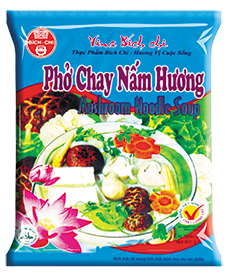 * Phở chay nấm hương làm từ bột gạo, bột mì, bột nấm hương, dầu thực vật, muối, đường, ớt…;giá tham khảo: 3.400 đồng/gói.