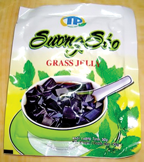 *Bột sương sáo đen sản xuất từ nguyên liệu tự nhiên, gồm: lá cây sương sáo, bột gạo. Sản phẩm đóng gói tiện dụng, dễ dàng sử dụng chế biến món sương sáo tráng miệng, giải nhiệt cho những ngày hè. Sản phẩm của Cơ sở Thuận Phát; giá tham khảo: 14.200 đồng/gói 50gram.