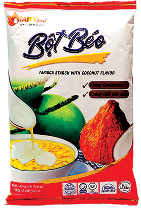 *Bột béo thành phần gồm: tinh bột khoai mì, hương dừa tự nhiên... Sản phẩm đóng gói nhỏ gọn, giúp gia tăng hương vị cho các món ăn, như: bánh mì, kem, chè... thêm vị béo hấp dẫn. Sản phẩm của Công ty cổ phần Bột thực phẩm Tài Ký; giá tham khảo: 37.000 đồng/ gói 1kg.