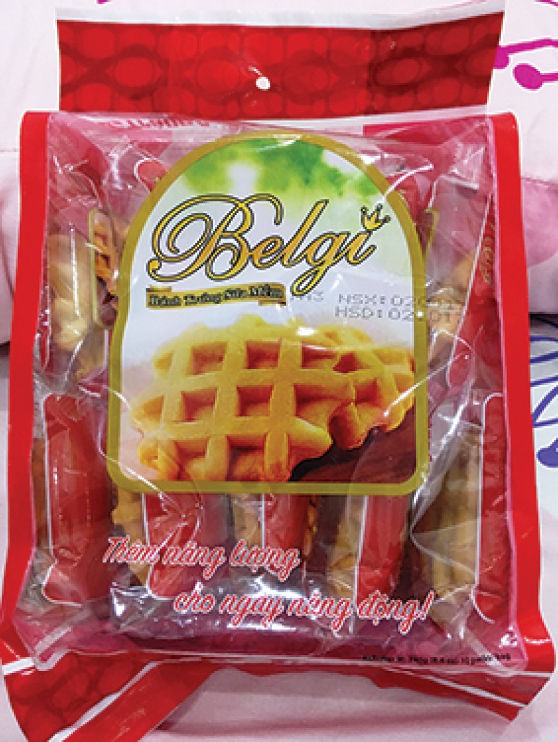 * Bánh phủ sô-cô-la từ bột mì, trứng, đường, sữa bột… Sản phẩm của Công ty cổ phần bánh kẹo Hải Hà, có bán tại một số cửa hàng, siêu thị; giá tham khảo: 21.500 đồng/gói 216gram.