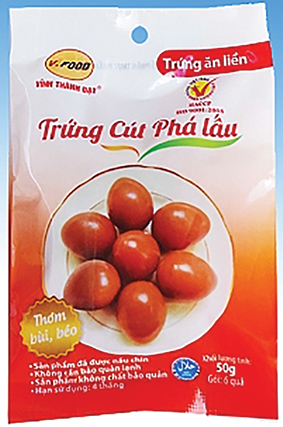 *Trứng cút phá lấu thành phần: trứng cút, đường, muối, gia vị. Sản phẩm chế biến sẵn, không sử dụng chất bảo quản, tiệt trùng. Trừng cút phá lấu có mùi thơm ngon đặc trưng. Giá tham khảo: 7.500 đồng/ gói 6 trứng.