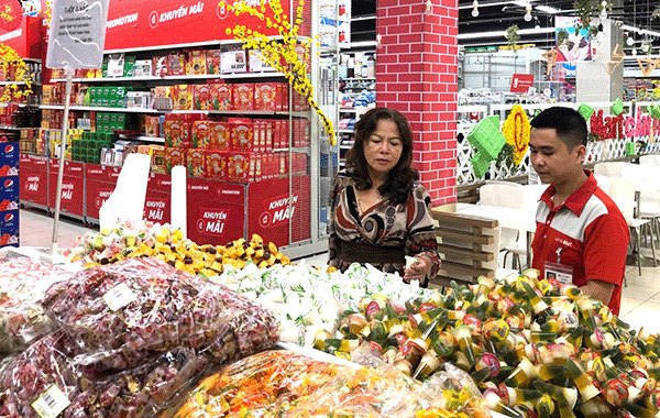 Ông Vũ Thanh Tân, đại diện Big C Việt Nam, cho biết, để phục vụ nhu cầu tiêu dùng tăng cao của người dân trong dịp Tết Nguyên đán Canh Tý 2020, Big C đã hoạch định số lượng hàng hóa dự trữ tăng khoảng 25% so với cùng kỳ năm ngoái với hơn 2.200 tấn bao gồm: bánh, kẹo, mứt. Trong đó, 95% là hàng Việt Nam với các thương hiệu nổi tiếng: Kinh Đô, Trung Nguyên, Phạm Nguyên, Vinamit, Bibica, Hương Việt, Hải Hà, Vinabico... Để kích cầu tiêu dùng, hệ thống Big C còn triển khai chương trình "Vui Tết Việt", giảm giá từ 20-49% áp dụng với nhiều sản phẩm bánh kẹo, mứt Tết… Đặc biệt, năm nay, Big C mở rộng diện tích trưng bày các sản phẩm Tết: bánh, kẹo, mứt, hạt, thạch, khô các loại …, các đặc sản vùng miền đến từ các địa phương trên cả nước cho khách hàng sự lựa chọn phong phú. Cùng với hệ thống trên toàn quốc, Big C Cần Thơ hiện cũng đang bày bán đa dạng các loại hạt, bánh, kẹo mứt, lạp xưởng, dưa muối các loại... Theo Big C Cần Thơ, các sản phẩm Tết hầu hết là hàng Việt Nam, nhiều sản phẩm còn được chứng nhận hàng Việt Nam chất lượng cao.