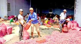 (CT)- Ông Lê Minh Trường, Trưởng phòng Nông nghiệp và Phát triển nông thôn huyện Vĩnh Châu, tỉnh Sóc Trăng, cho biết: Hiện nay, năng suất hành tím nông dân thu hoạch (ảnh) hiện ước đạt 15 tấn/ha. Thương lái đến tận nhà thu mua hành tím của nông dân từ 15.000-20.000 đồng/kg, cao hơn gấp đôi so với cùng kỳ năm trước. Với giá bán này, nông dân cầm lời khoảng từ 120-150 triệu đồng/ha.