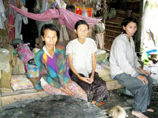 Cô Dạ và hai đứa con tâm thần trong căn bếp dột nát. |
