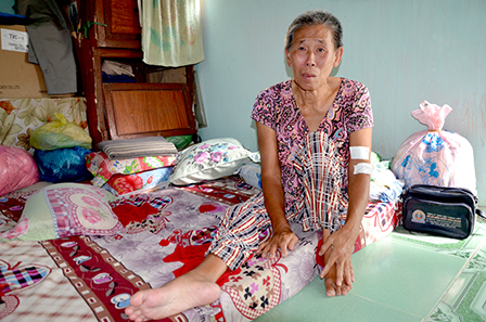 Không có tiền mua thuốc uống, bà Hai gánh chịu vết thương hành hạ đau nhức đêm ngày.